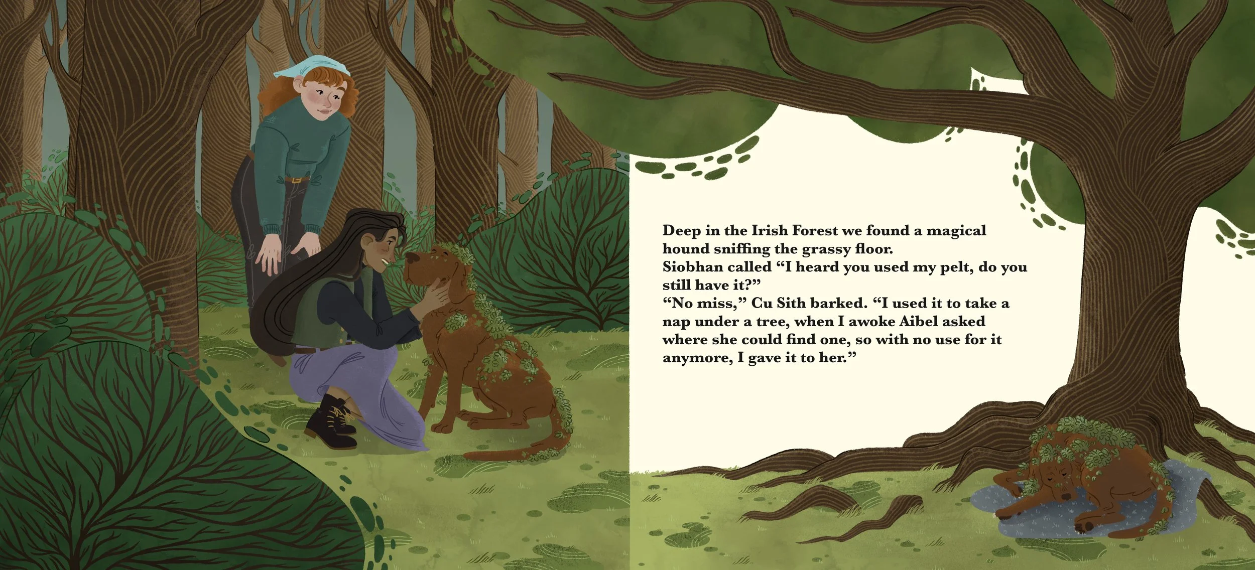 In the vast lush lands of Ireland, many fables and folklore have been created from the country's unique culture. Stories of three-headed creatures, wise salmon, dragons, and seals who can turn into humans and walk amongst the Irish villages. For this project, I created a children’s book about Irish Mythology. I created a cohesive story starring a selkie for young children to learn about Irish Mythology and hopefully get inspired to learn about other mythologies. On a foggy day, a human named Orla finds a woman on the beach weeping. Once Orla asks the woman what is wrong, the woman reveals that her name is Siobhan and she is a selkie who has lost her pelt thus unable to turn back into a seal and to go home in the ocean. With a good heart, Orla decides to help the selkie find her pelt. The two women must journey across the beautiful country, encountering many mythical creatures legends, and deities who lead them to find the missing pelt.